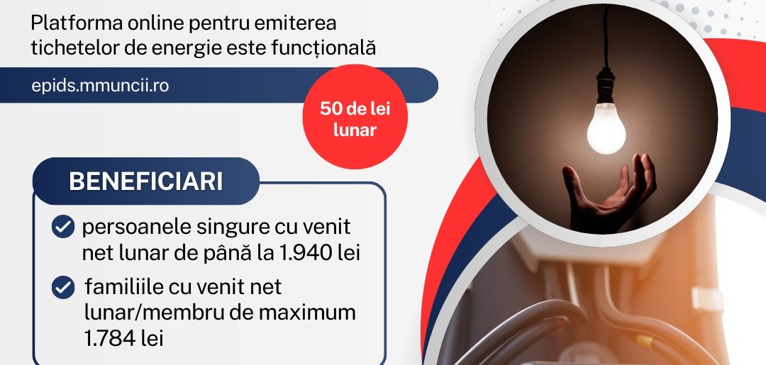 Platforma electronică EPIDS pentru acordarea tichetului de energie este funcțională Consumatorii vulnerabili pot solicita, online, acordarea tichetului electronic de energie, începând de azi, în platforma electronică EPIDS, pe adresa epids.mmuncii.ro.