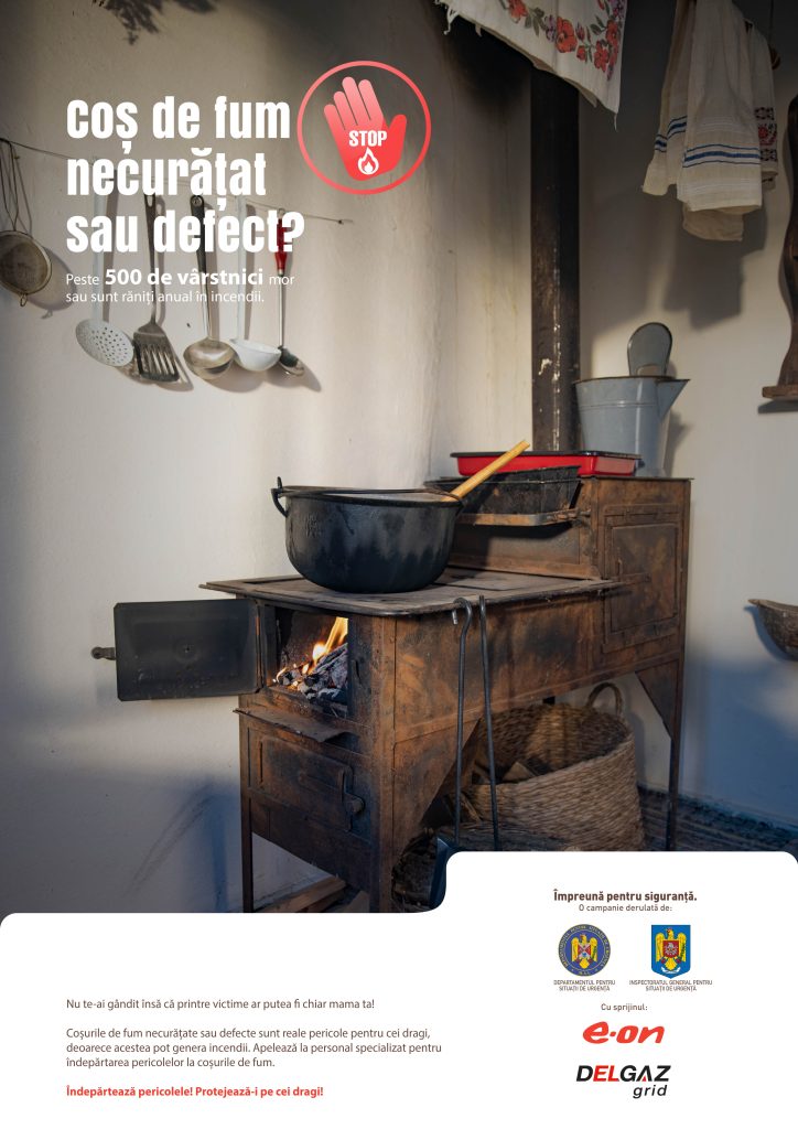 La exploatarea coşurilor pentru evacuarea fumului trebuie respectate următoarele măsuri de prevenire a incendiilor: Coşurile se leagă de structură la trecerea prin planşee prin dispozitive constructive în vederea asigurării rezistenţei şi stabilităţii; La străpungerea planşeelor combustibile elementele de lemn ale planşeelor trebuie să fie distanţate la cel puţin 24 cm de la faţa interioară a coşului de fum (completarea spaţiului dintre coş şi planşee se realizează cu materiale termoizolatoare incombustibile); Când coşurile sunt amplasate lângă pereţi de lemn sau alte materiale combustibile, se lasă între acestea un spaţiu de cel puţin 10 cm, protejând în acelaşi timp peretele cu materiale rezistente la foc; La traversarea podului clădirii şi la străpungerea acoperişului, feţele exterioare tencuite ale coşurilor de fum trebuie să fie la cel puţin 10 cm distanţă de elementele din lemn; În podurile clădirilor coşurile de fum se tencuiesc pe interior şi pe exterior şi se dau cu var, ca să se poată observa cu uşurinţă eventualele fisuri; În podul clădirilor şi în încăperi pardoseala combustibilă din dreptul uşiţei de curăţare se protejează cu materiale combustibile; Gurile de evacuare ale coşurilor de fum din clădirile cu învelitori combustibile se prevăd cu dispozitive de protecţie contra scânteilor (grătare din sârmă); Coşurile amplasate până la distanţa de 150 cm de coamă trebuie să depăşească coama cu 50 cm pentru învelitori incombustibile şi cu 100 cm pentru învelitori combustibile; Se interzice racordarea focarelor alimentate cu gaze la canalele de fum care deservesc şi focare alimentate cu combustibil solid sau lichid; În spaţiile cu pericol de incendiu şi explozie nu se folosesc burlane din tablă pentru evacuarea fumului; Se interzice folosirea improvizaţiilor la burlanele metalice de evacuare a fumului cu coturi multiple, montate pe lângă pereţii combustibili sau în apropierea materialelor combustibile; Asiguraţi verificarea şi curăţarea periodică a coşurilor de fum, precum şi repararea acestora, dacă este cazul, de către personal atestat. La exploatarea mijloacelor de încălzire locale trebuie respectate următoarele măsuri de prevenire a incendiilor: NU folosiţi decât materialul combustibil pentru care a fost destinată soba şi evitaţi supraîncărcarea acesteia; NU folosiţi soba decât cu uşiţa închisă; Aşezaţi o tăviţă metalică în faţa sobei, în dreptul uşiţei; NU aşezaţi în apropierea sobei sau pe aceasta materiale combustibile; Stingeţi focul din sobă înainte de a părăsi locuinţa; NU adormiţi niciodată cu focul aprins în sobă; NU aşezaţi aparatele de încălzire electrice în apropierea materialelor combustibile; NU aşezaţi materiale combustibile pe mijloacele de încălzire; Decuplaţi aparatele de încălzire electrice înainte de a părăsi locuinţa sau de a adormi; NU lăsaţi niciodată copiii nesupravegheaţi cu focul aprins în sobă ori cu aparatele de încălzire electrice în funcţiune; Verificaţi integritatea aparatelor şi mijloacelor de încălzire, iar în cazul în care acestea sunt defecte, reparaţi-le cu ajutorul unor persoane atestate sau cumpăraţi-vă altele noi.